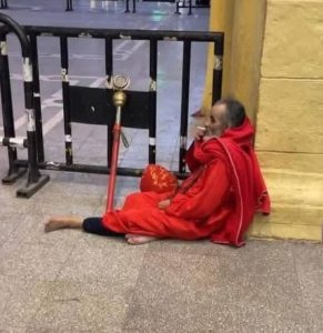 رجل بملابس غريبة وممسك بأشياء وصفت بالمثيرة للجدل