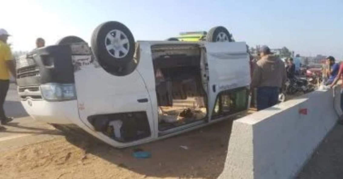 أصيب 7 أشخاص بسحجات وكدمات وكسور متفرقة في أنحاء الجسم، إثر حادث انقلاب ميكروباص أعلى الطريق الأوسطي.