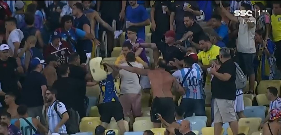 في البداية، نشبت نزاعات في المدرجات بين جماهير الفريقان، وتوقفت المباراة وتدخلت القوات الأمنية واستطاعت السيطرة على الموقف والخروج من الأزمة سريعًا، بعد توجه ميسي ورفاقه إلى غرفة خلع الملابس.