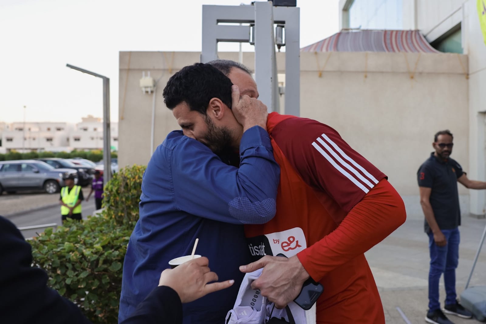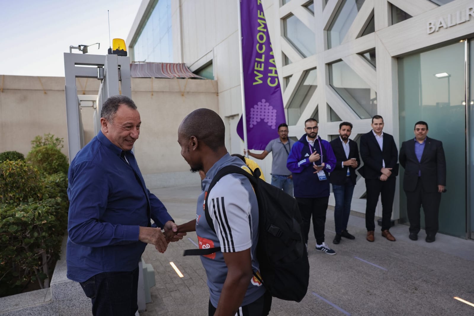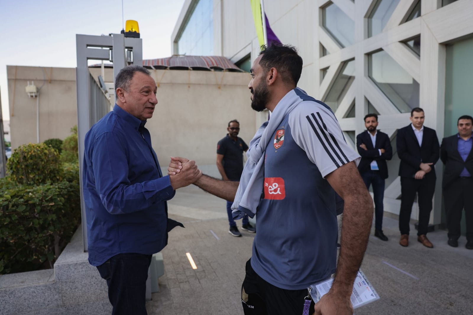 وكان محمود الخطيب رئيس النادي الأهلي، في إنتظار الاعبين أمام فندق الإقامة، وقام بمصافحو جميع اللاعبين قبل المغادرة إلى المران.