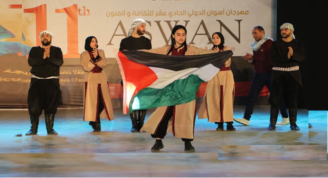 ورفع ذلك الشعار يدل على هويتها الفلسطينية، وحقها في الحياة والحرية، كما قدمت فرقة الهند للفنون الشعبية، رقصات تراثية وتقليدية معبرة عن تاريخ، وثقافة الهند، والمستوحاة من القصص والملاحم الهندية القديمة، بحركاتها القوية والرشيقة.