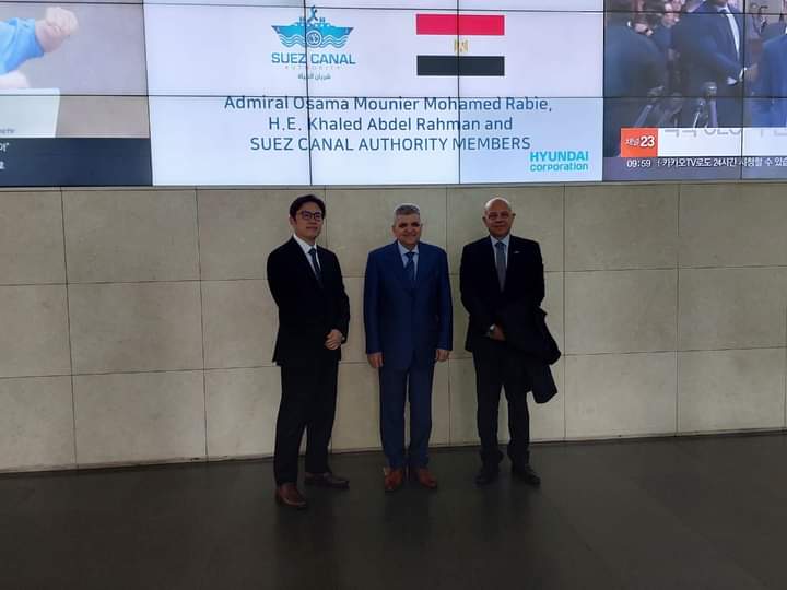 اجتمع الفريق أسامة ربيع رئيس هيئة القناة ونكاب كيم نائب رئيس مجلس إدارة شركة هيونداي، وأهينسوك تشانج رئيس الشركة، لبحث آليات التعاون المشترك في مجال تقديم الخدمات اللوجيستية.