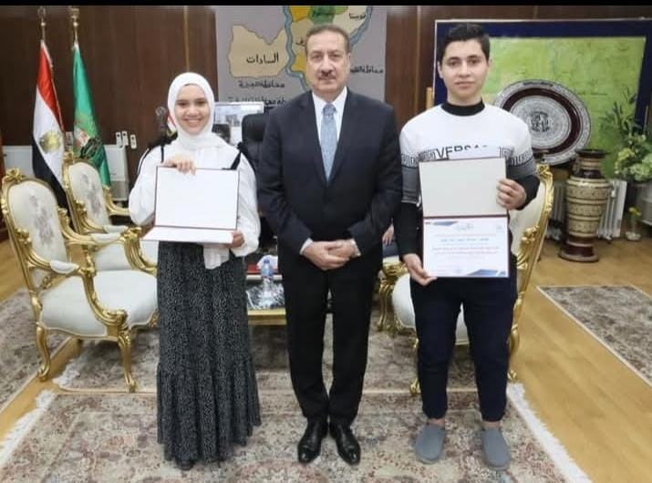 كرم اللواء إبراهيم أبو ليمون محافظ المنوفية، الطالب عبد الله رمضان الخولي، والطالبة جنى غنيم سعيد، الفائزين بالمركزين الأول والثاني على مستوى الجمهورية في مسابقة وزارة التربية والتعليم لحفظ القرآن الكريم.
