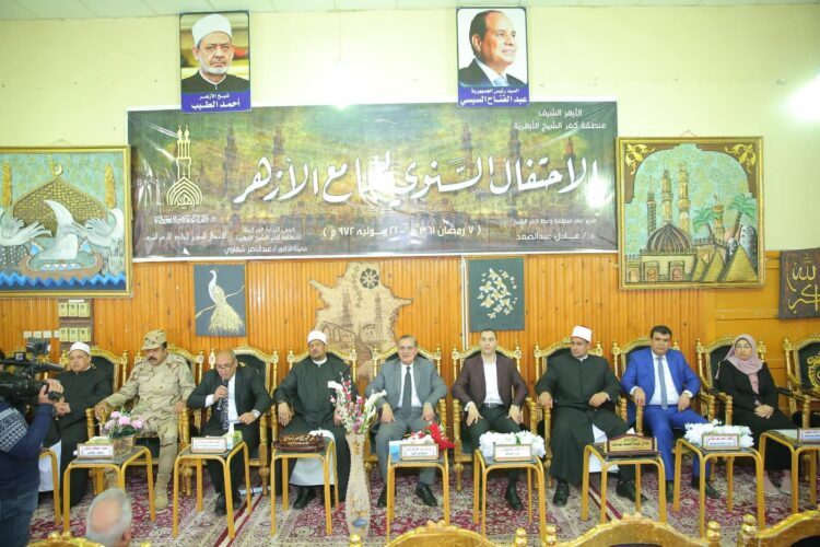 شهد اللواء جمال نور الدين محافظ كفر الشيخ، والدكتور عمرو البشبيشي نائب محافظ كفرالشيخ، الاحتفالية السنوية للجامع الأزهر الشريف بمناسبة مرور 1084 عامًا على تأسيسه، بمنطقة كفرالشيخ الأزهرية.