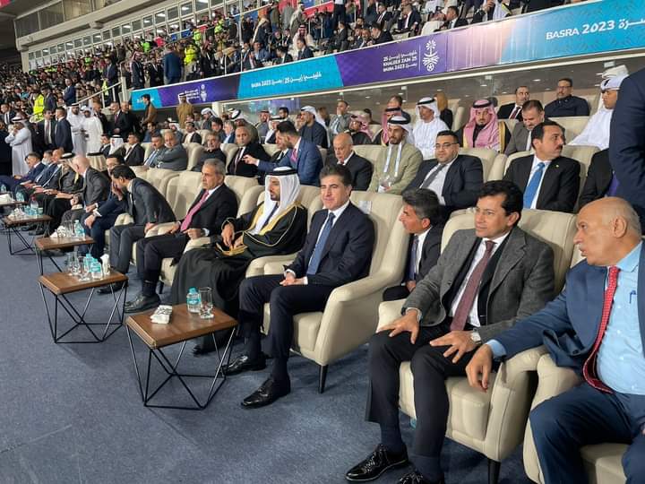 شهد الدكتور أشرف صبحى وزير الشباب والرياضة ، رئيس المكتب التنفيذى لمجلس وزراء الشباب والرياضة العرب ،حفل افتتاح كأس الخليج العربى لكرة القدم فى نسخته الـ (٢٥)، والذى تستضيفه العراق.